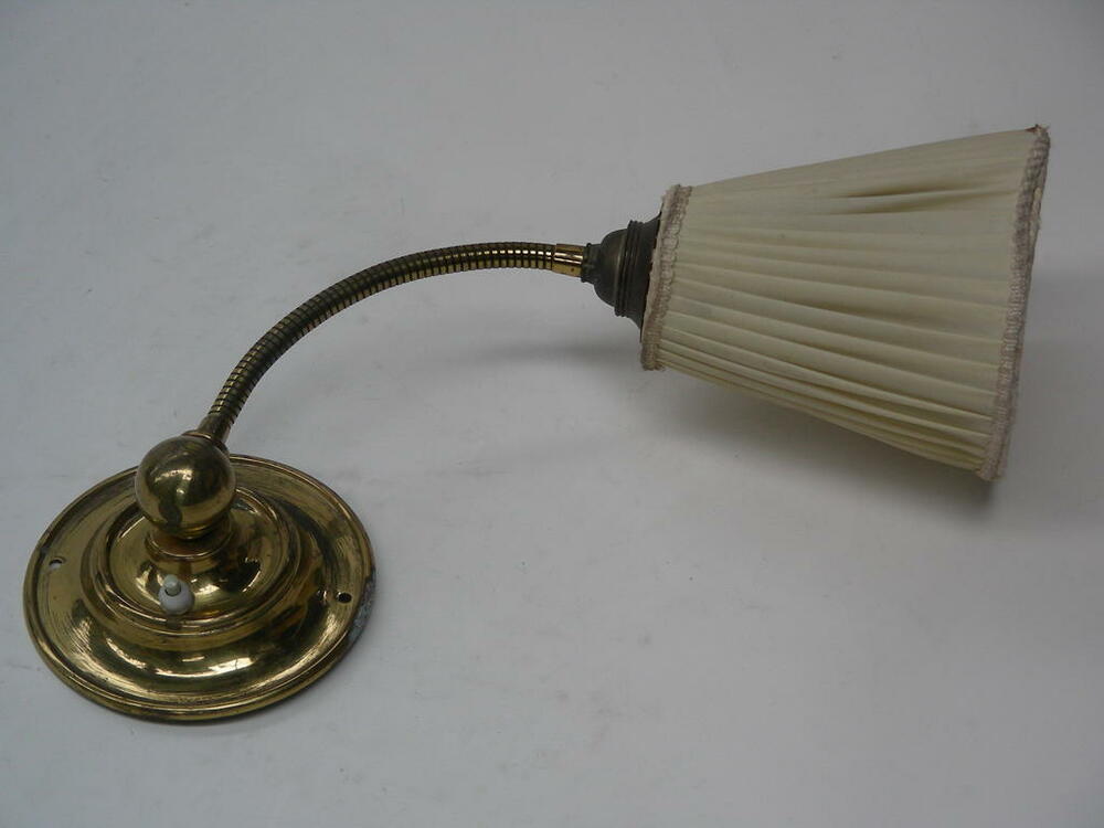 Wandleuchte, biegbar, Messinghals, Stoffschirm, plissiert