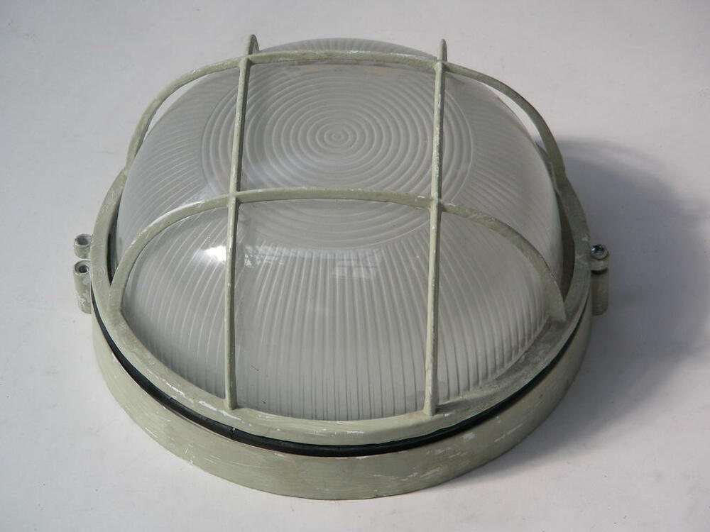 Wandleuchte, Deckenleuchte, Kellerleuchte, rund, Schutzgitter, Metall, Glasschirm, "Pollux"