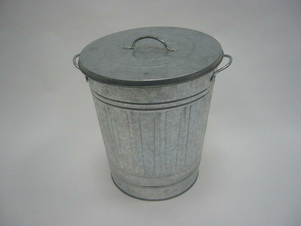 Mülltonne, "Oskartonne", Metall, geriffelt mit Deckel, Blech, unten schmaler werdend