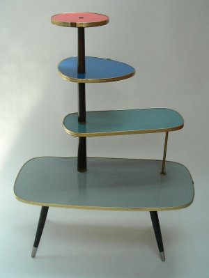 Blumenständer, Blumenbank, vier - stöckig, Holz, Resopal, Messingumrandung