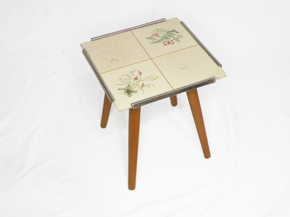 Blumentischen, Blumenbank, gefließt, Blumendekor, Chromkanten, 50-er