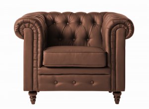 Sessel, Chesterfield, gepolstert, Kunstleder, gerundete Armlehne, Holzfüße