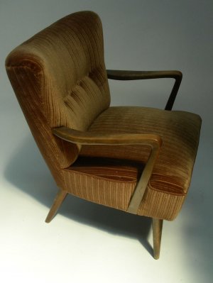 Sessel, Cocktailsessel, gepolstert, Breitcord, Armlehnen, Holzfüße