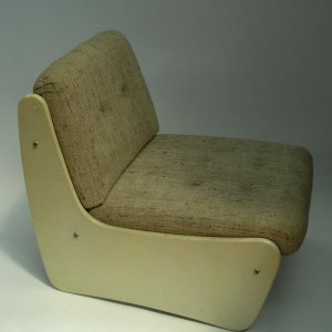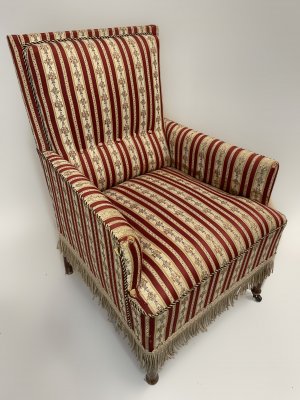 ein Sessel mit Beschädigungen an rechter Armlehne,
