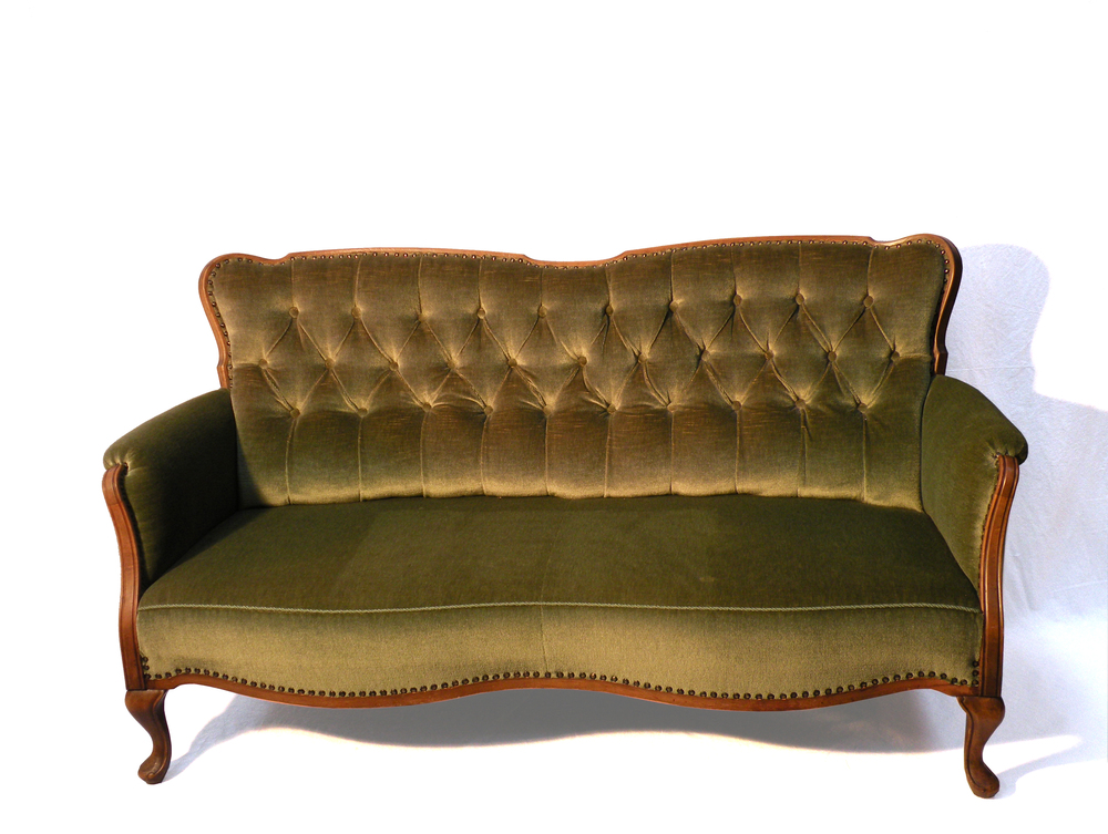 Sofa, 2-Sitzer, Chippendale, gepolstert, Holzarmlehne, Holzfüße