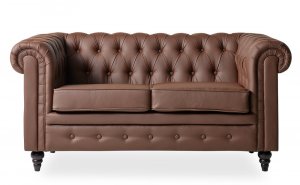 Sofa, 2-Sitzer, Chesterfield, Kunstleder, gerundete Armlehne, Holzfüße
