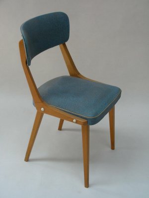 Stuhl, Küchenstuhl, Holz, Kunstlederbezug, meliert, mit Keder (Einfassung)