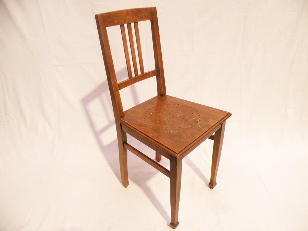 Stuhl, Wartestuhl, Küchenstuhl, gelochtes Holzdekor,