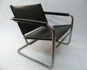 Stuhl, Wartestuhl, Freischwinger, Leder, mit Armlehne, Chromgestell