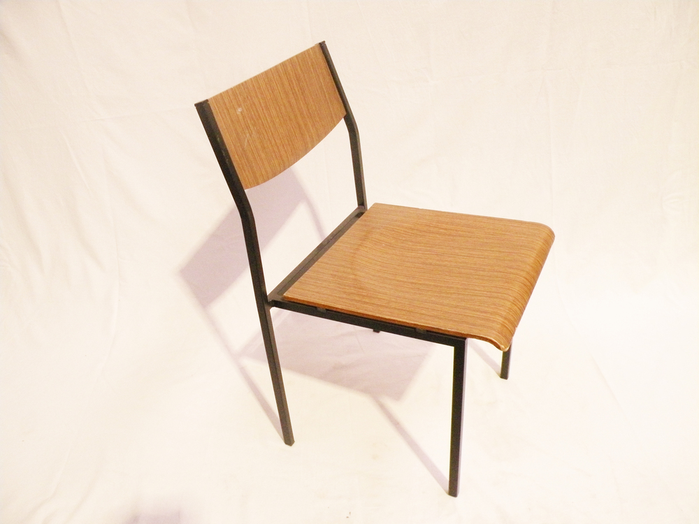 Stuhl, Wartestuhl, Küchenstuhl, Stahlgestell, Holzdekor,