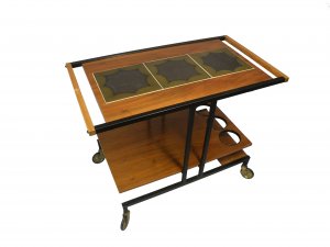 Servierwagen, Barwagen, rollbar Fließenintarsien, Holz/Stahl, 2 Ebenen, mit 3 Aussparungen für Flaschen