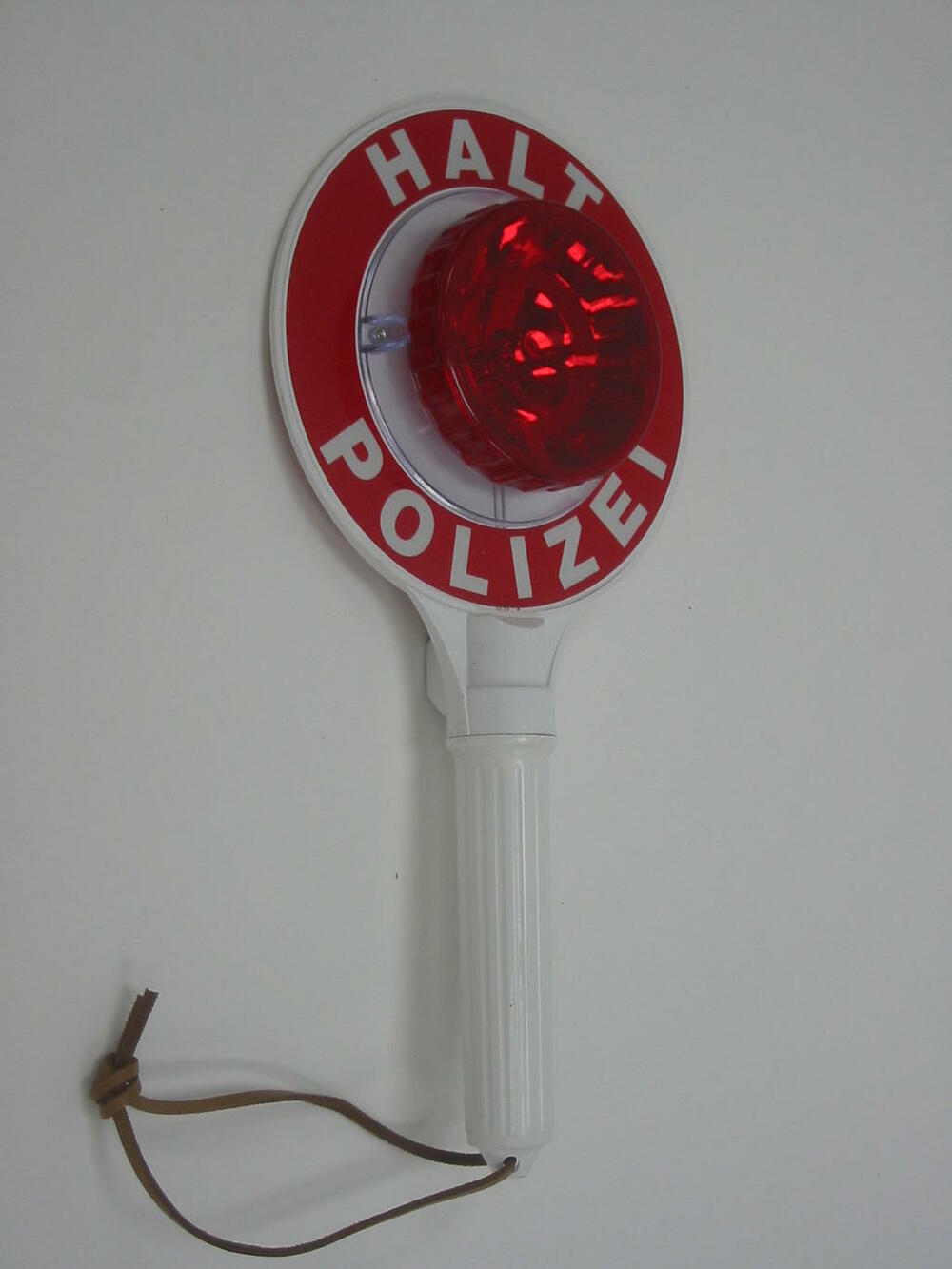 Beschreibung: Polizeikelle, Anhaltekelle, mit Beleuchtung