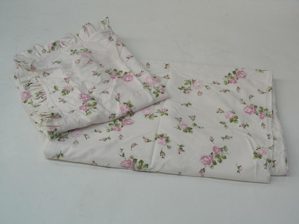 Bettwäsche, Kissen -und Deckbett - Bezüge, Biber, florales Muster, Kissen mit Volant,
