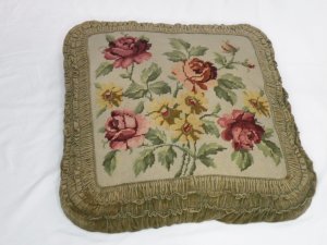 Kissen, Sofakissen, Samt, gesticktes Inlay, Blumenmuster
