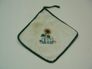 Topflappen, Struktur, Sonnenblumen - Applikation, "Ross", passend zu Topflappen: T_kue_0006