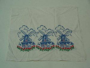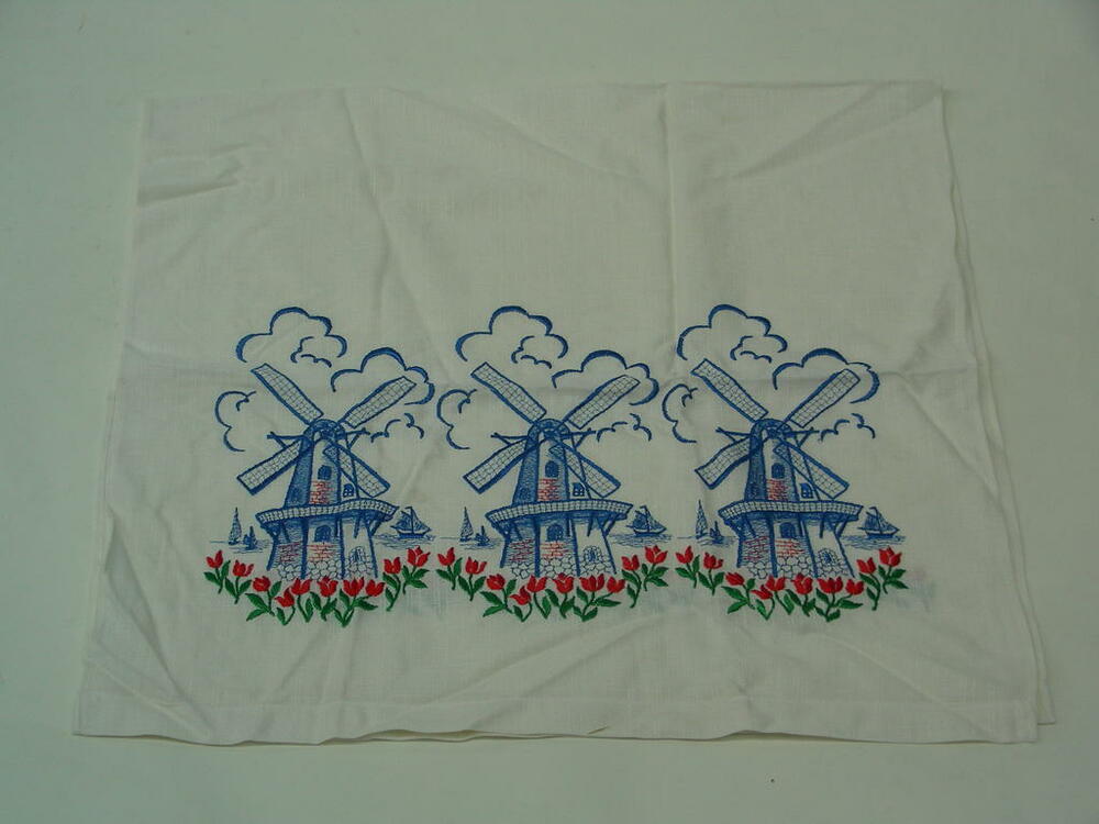 gesticktes Windmühlen-/Tulpen - Muster, holländisch, auch als Wandbehang verwendbar