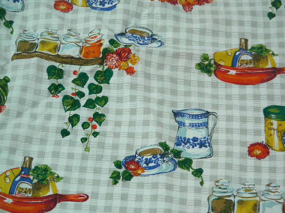 Vorhangschal, gedrucktes Küchen - Motiv auf kariertem Grund