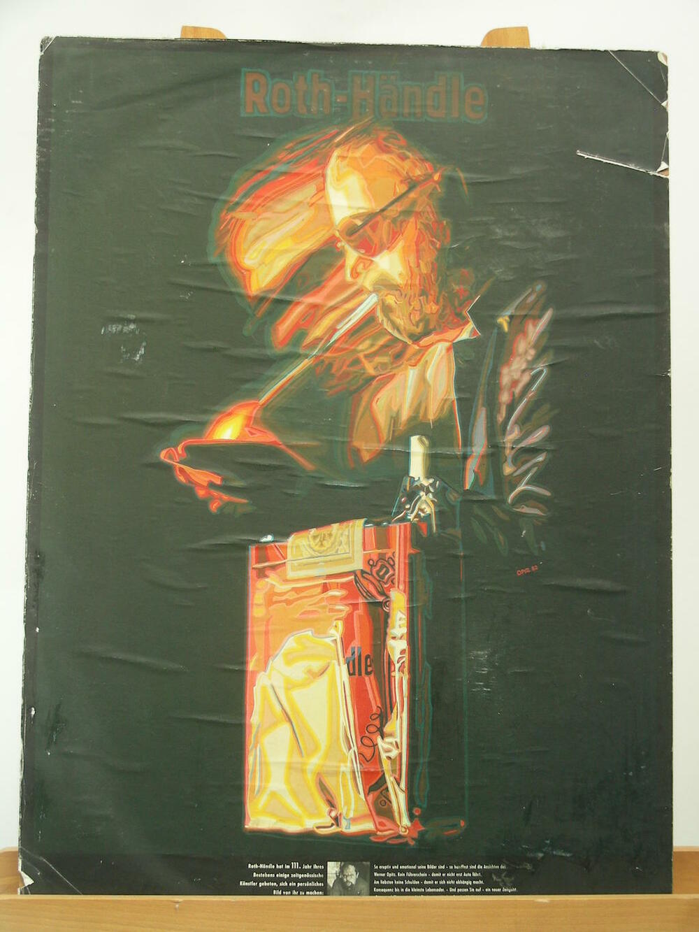 Gemälde, Werbekunst, "Roth Händle", Werner Opitz, aufgezogen auf Weichfaserplatte