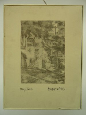 Gemälde, Zeichnung, "Häuser", Kunststoffrahmen
