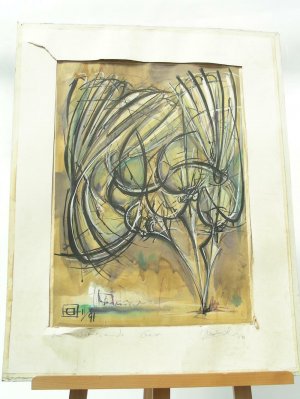 Gemälde, Aquarell, "Drei abstürzende Geier", Martin Sander