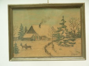 Bild, Winterlandschaft, Gold - Holzrahmen