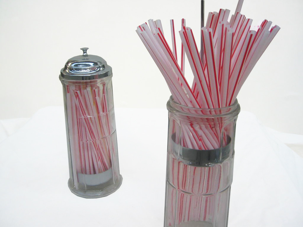 Strohhalm-Spender, Glas, mit silbernem Ausziehdeckel, Gastro