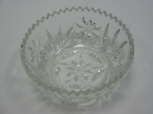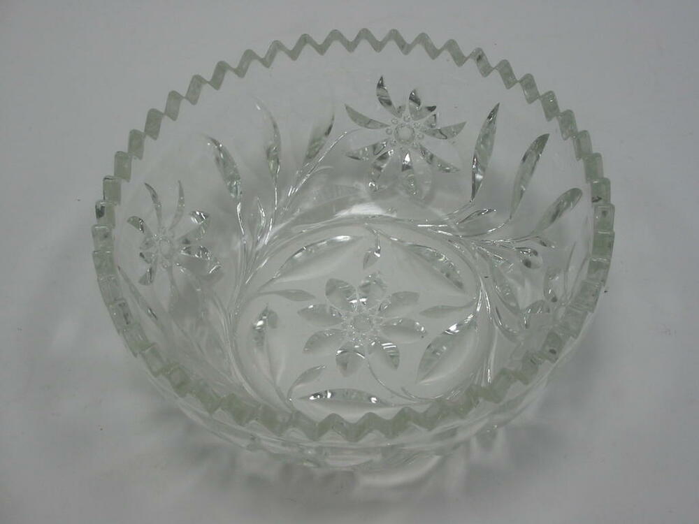 Schale, Schüssel, facettiert, Motiv "Blume", zackiger Rand