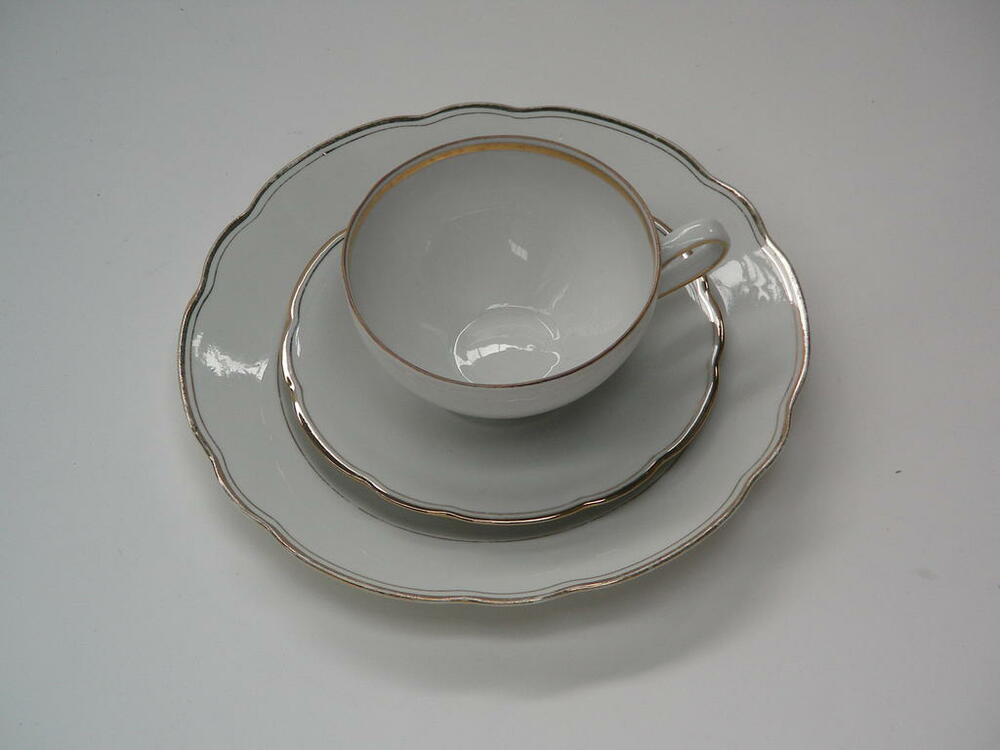 Kaffeeservice, Goldrand, Wellenrand, 12 Untertassen, 6 Tassen, 19 Kuchenteller, "Bavaria"