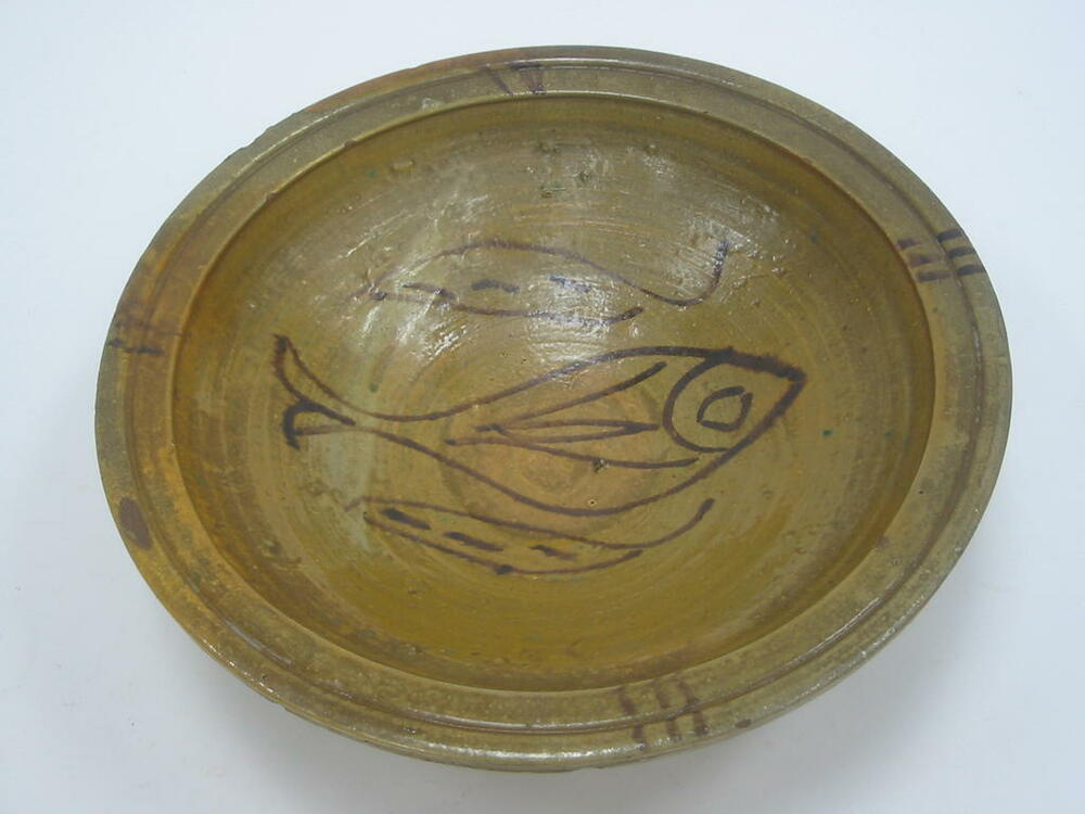 Schale, Schüssel, Keramik, bemalt, Motiv "Fisch"