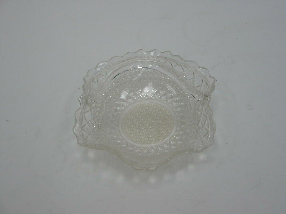Schale, Körbchen, Keksschälchen, Glas, mit Henkel, facettierte Unterseite