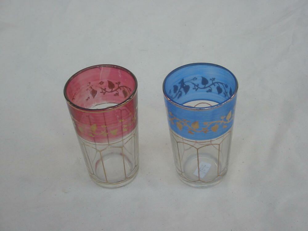Glas, Tee, arabisch, Gold - Ornament, farbig bedruckt, blau + rot