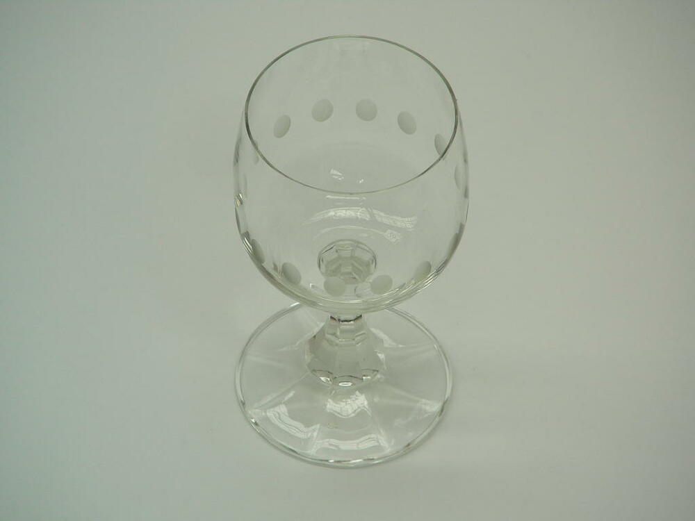 Glas, Weinglas, eingravierte Punkte, facettierter Stiel
