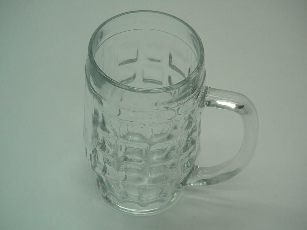 Glas, Bierglas, mit Henkel, vertiefte Quadrate, 0,5 l, "Bormioli"