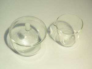 Zuckerdose mit Deckel, Milchkännchen ohne Henkel, Glas, 3 - teilig "Jenaer Glas", passend zu Teeglas: K_kue_0399