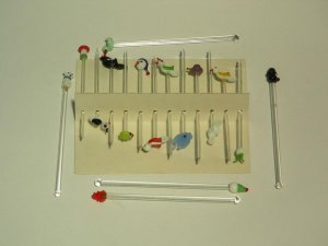 Cocktailstäbe, Glas, diverse Figuren am oberen Ende