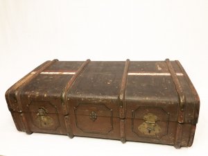 Koffer, Reisekoffer, Schrankkoffer, historisch, Pappe, Holzleisten