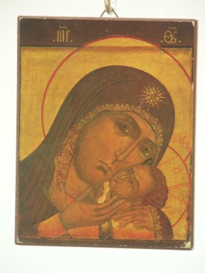 Bild, religiös, "Maria mit Kind", aufgezogen auf Spanplatte