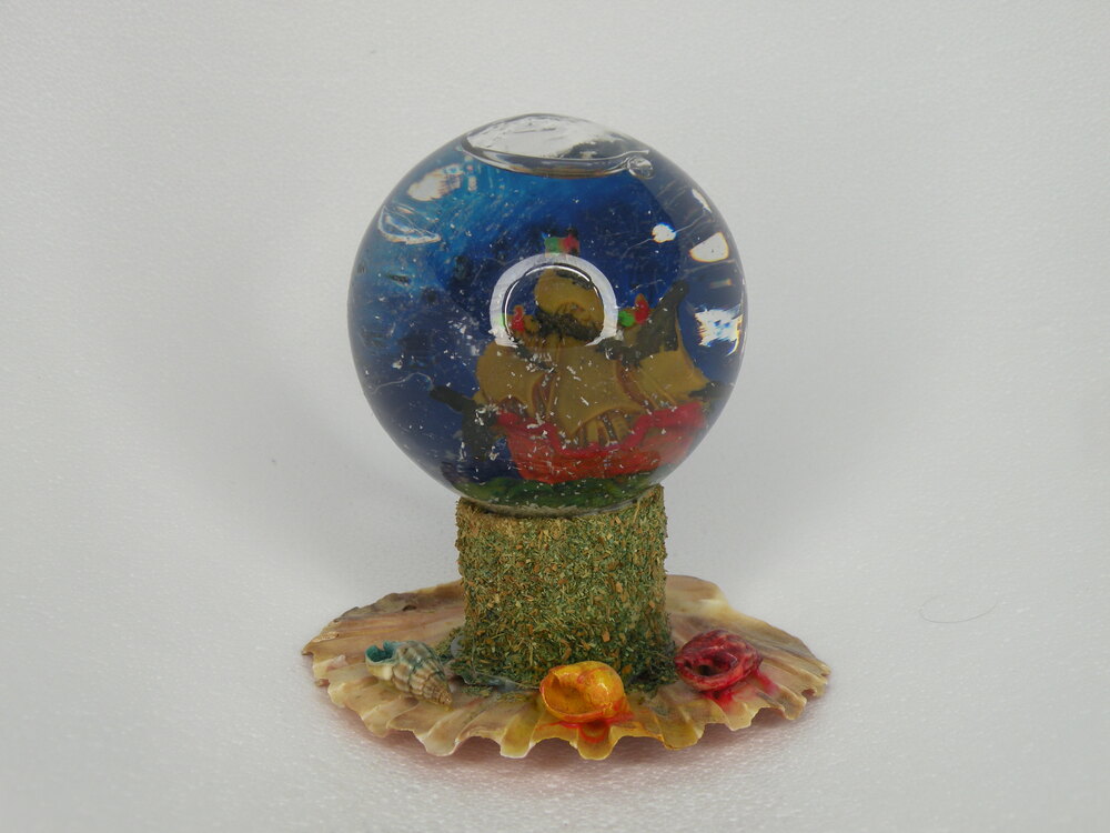 Schneekugel, Motiv "Segelschiff", Muschelsockel, historisch, 50-er, d= 0,06