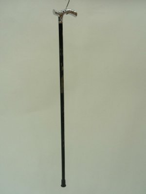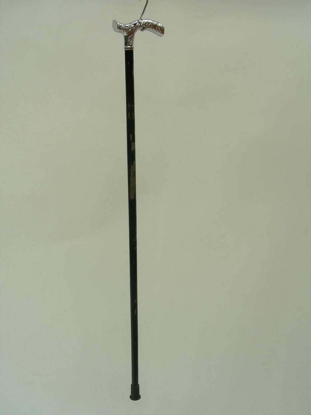 Spazierstock, Gehstock, Gummipfopfen, Metallgriff, ziselliert, Holz