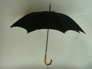 Regenschirm, Stockschirm, Holzgriff, Textil, zwei Löcher im Schirm