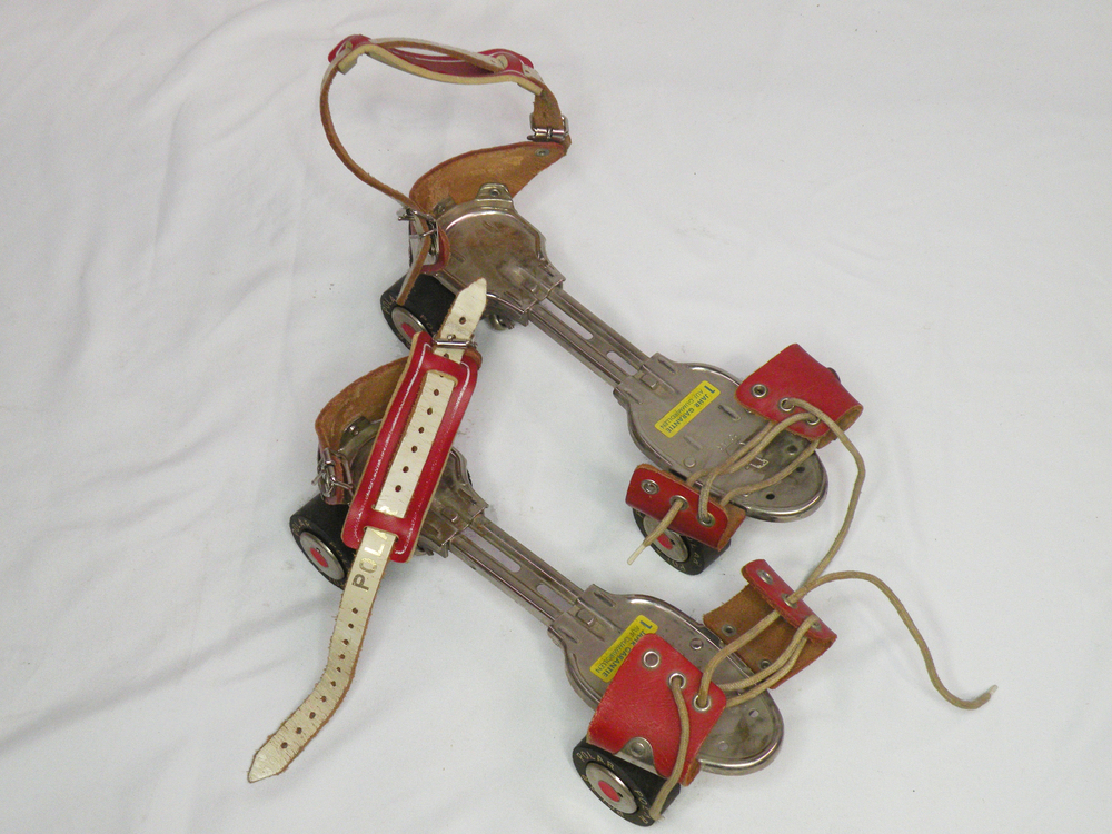 Rollschuhe, Paar, "Polar", historisch, Gummirollen, Lederriemen verstellbar