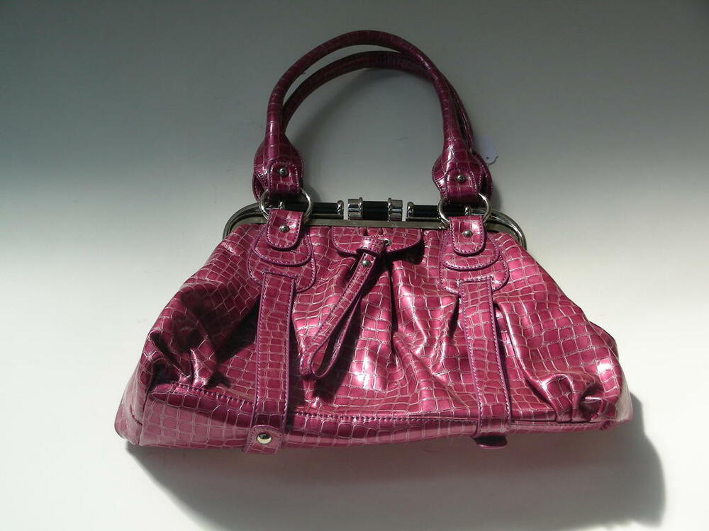 Handtasche, Umhängetasche, Innentaschen, Klippverschluss, Kunstleder/Metall, Krokodiloptik, Metalliceffekt