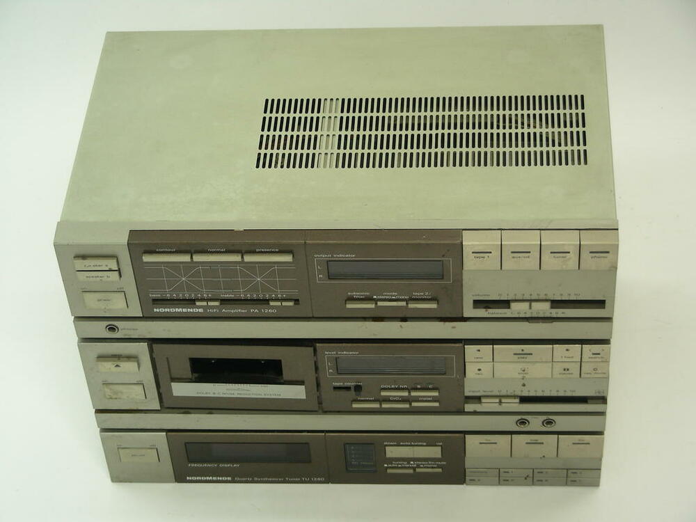 Stereoanlage, drei Komponente: Tuner, Amplifier, Cassettendeck, "Nordmende", passend zu Lautsprecherboxen: K_tech_0192