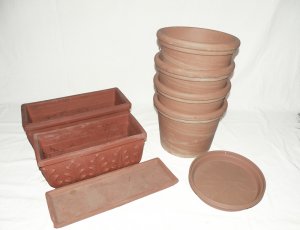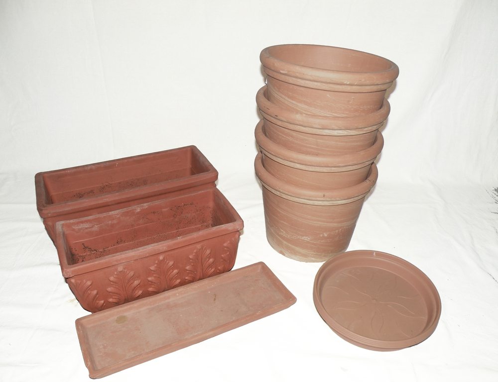 Blumentopf, Ton / Terracotta, verschiedene Tontöpfe + Untersetzer