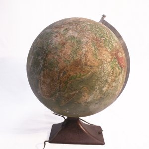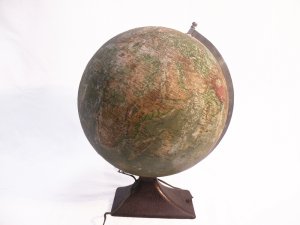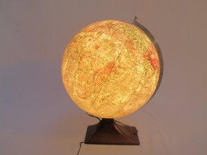 Globus, Weltkugel, Metallfuß, beleuchtbar, Glaskugel beschichtet, leichter Abrieb