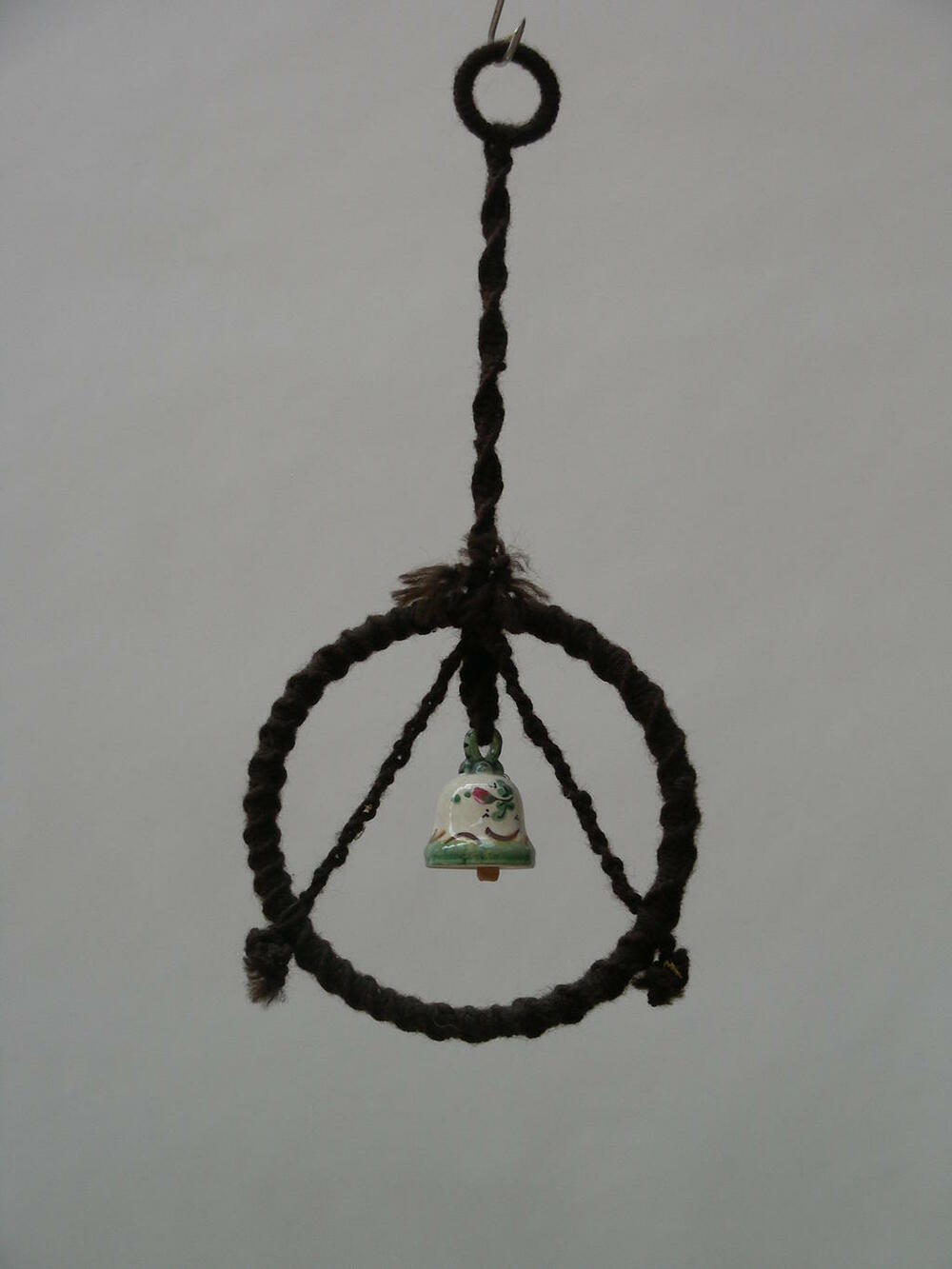 Dekorationselement, Makramee, Keramik - Glocke, bemalt