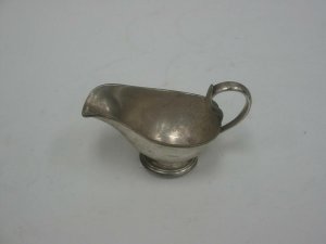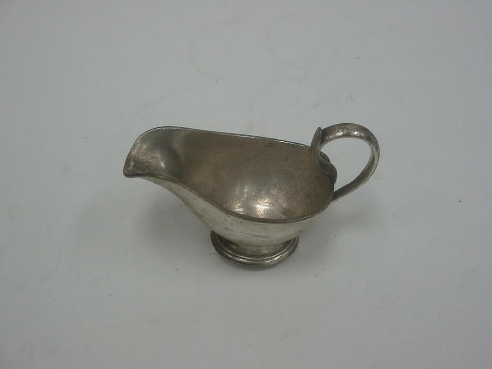 Silbergeschirr, Sauciere, verzierter Griff, mit Gravur am Boden