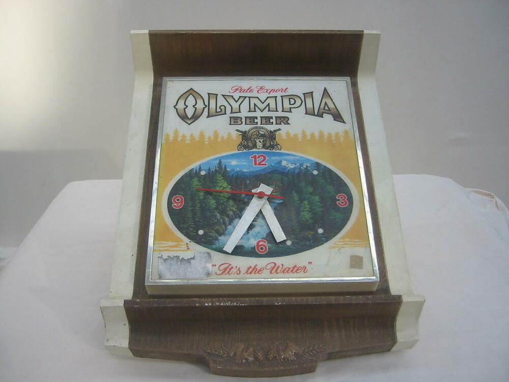 Uhr, Wanduhr, rechteckig, "Olympia Beer", beleuchtet, ohne Netzteil