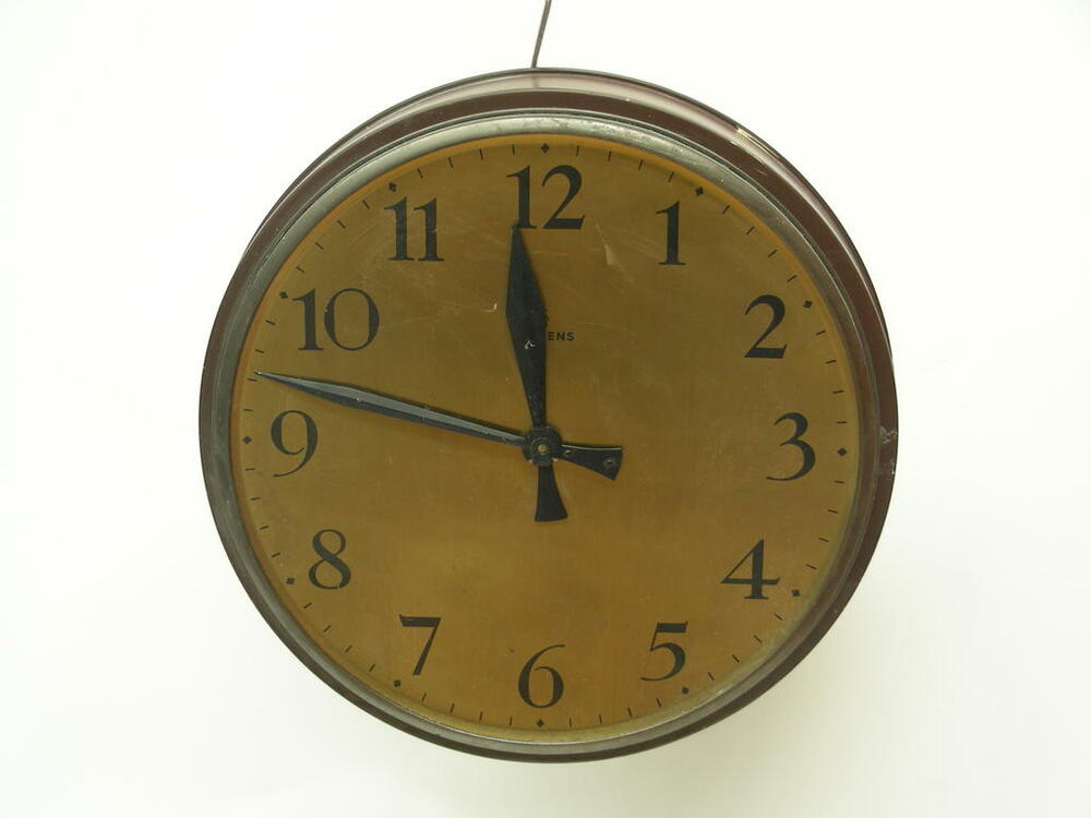 Uhr, Wanduhr, rund, Metall, "Siemens"