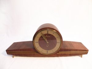 Uhr, Standuhr, Schrankuhr, Tischuhr, "Heko", 50-er, Holz, Messingverzierung